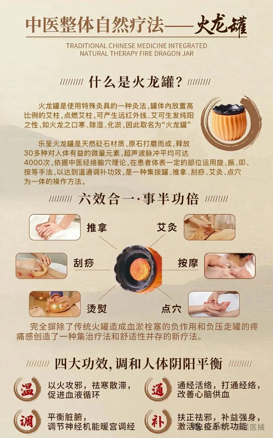 总结来说,火龙罐是一款结合传统中医理论和天然石材的中医治疗器具,强调了其复合功能、舒适体验和调理作用,且有医疗注册证,医用级效果更好。